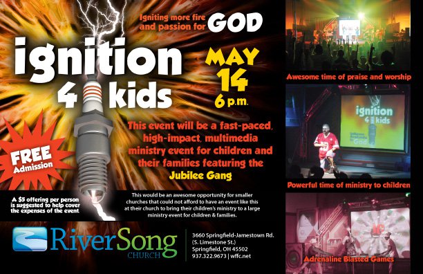 Ignition for Kids featuring The Jubilee Gang at Riversong Church in Springfield, OH May 14th at 6PM for more info contact Jerry at [email protected]