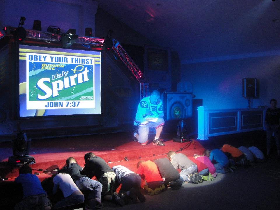 On Sunday April 28th Jerry ministered to the adults at Sunrise Bible Church in Sunrise Beach, MO then we did a Jubilee Gang event on Sunday night in their christian school gym and saw 11 children born again. On Monday morning we ministered during a christian school assembly and saw 18 children come forward to be born again.